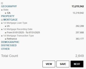 These are VA Refinance Deeds of Trust, recorded in California, from January through July 2025: 2649!