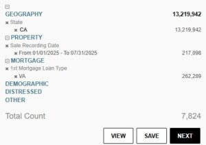 These are VA Purchase Deeds of Trust in California, January through July 2025: 7,824!