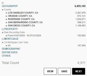 These are VA Purchased Deeds of Trust in the five Southern California counties, January through July 2025: 4,311!